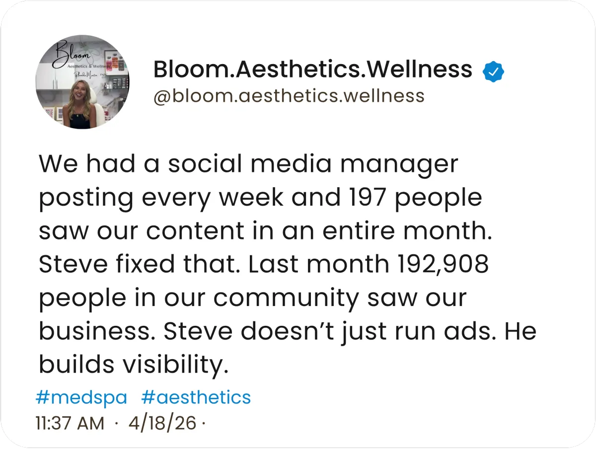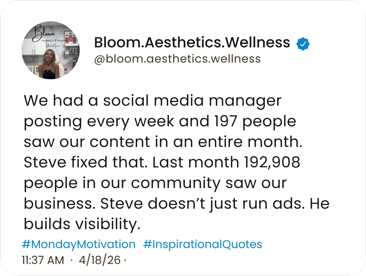 "Steve told us the truth about what our organic posting was actually producing. Then he showed us what was possible. The difference was impossible to argue with. We have not looked back."